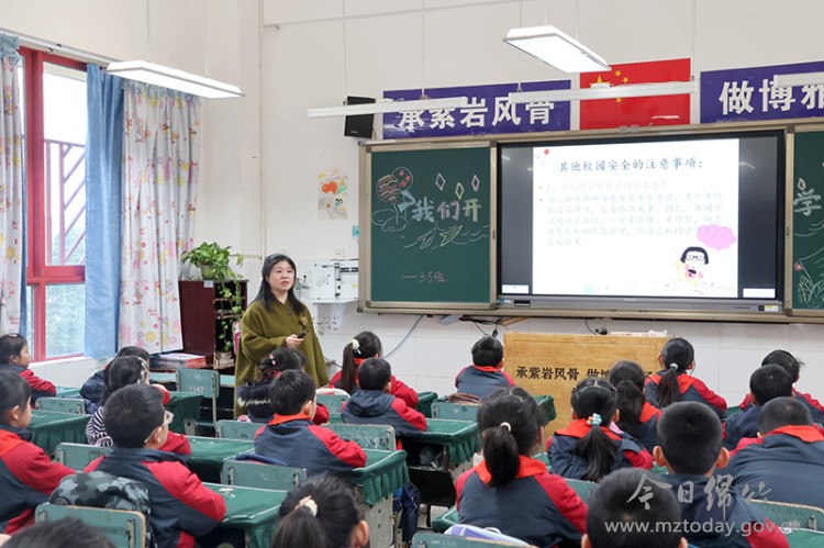 据板桥学校党支部书记、校长蒋红梅介绍,该校“开学第一课”立足绵竹乡土非遗与学校竹石文化特色,落实五育融合、文化传承相关的教育方针,让乡土非遗文化从“进校园”到“在校园”。同时,通过沉浸式的体验与主题教育,厚植师生的家国情怀,筑牢文化自信根基,为新学期赋能铸魂。 在紫岩小学,各个班级的“开学第一课”都在有序进行。在三年级5班的教室里,老师将交通安全、食品安全、消防安全等知识娓娓道来。并结合实际案例、生活小事、应急小故事等,引导学生深刻认识安全的重要性,加强对学生的安全宣传教育。
