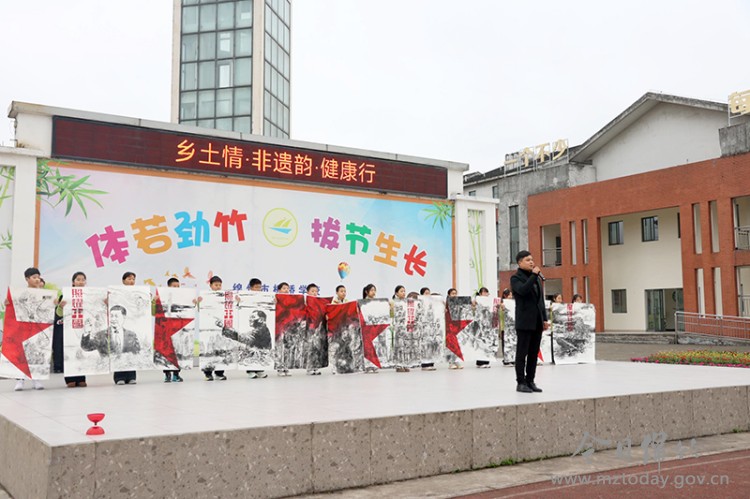 庄严的升旗仪式后,市委教育工委专职副书记曹霞以绵竹深厚的历史文化底蕴为引,鼓励同学们扎根乡土、传承文脉,争做担当民族复兴大任的时代新人。随后,空竹表演灵动翻飞,川剧变脸与舞狮表演气势磅礴,同学们近距离感受了传统文化的魅力。绵竹年画艺人林国栋为同学们现场介绍了绵竹木版年画作品《红星照耀中国》的创作过程,以非遗体验弘扬红色精神,并向学校捐赠了陶版年画作品,让非遗技艺在校园里薪火相传。全校师生齐诵《少年中国说》,铿锵有力的武术表演将活动推向高潮。