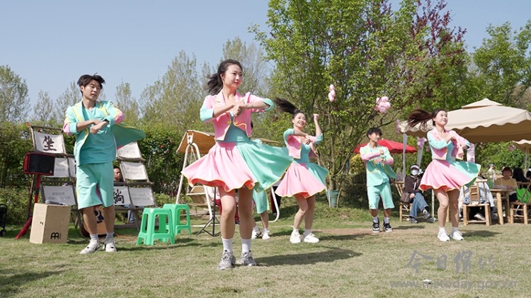 赛场之外,精彩纷呈的文艺表演与趣味活动同步上演。潮流樱花舞快闪精彩登场,年轻舞者节奏明快、动作简洁,引得游客纷纷驻足拍照、跟跳互动;小型乐队演唱春日治愈系曲目,悠扬旋律随风飘荡。而在趣味互动区,抓兔活动吸引了孩子们积极参与,大家挽起袖子,在场地内追逐憨态可掬的小兔,尖叫声、欢笑声此起彼伏。