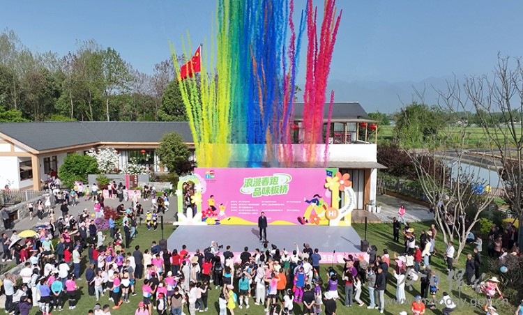 4月4日上午,“酒香画境·村游绵竹”剑南街道分会场——“浪漫春跑·品味板桥”系列活动在板桥集镇社区香榭河畔生态农庄拉开帷幕。800名跑步爱好者在樱花盛开的赛道上尽情奔跑,用汗水与欢笑点燃春日激情,奏响“体育+文旅+消费”的乡村振兴奋进曲。