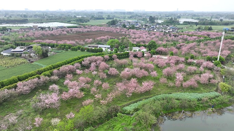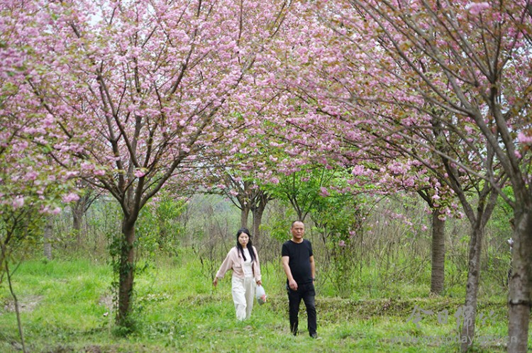 在剑南街道板桥集镇社区的樱花种植基地,200亩樱花连成一片粉色海洋,粉白相间的花瓣缀满枝头,携着春日的生机在春风中轻轻摇曳,与远处的青山、周围的村落相映成趣,勾勒出一幅如诗如画的田园画卷。三五成群的游客穿梭其间,或在花树下驻足拍照、定格春日美好,或沿小径漫步赏景,在沁人花香中邂逅春日的温柔与浪漫。“今天和家人一起来踏青赏景,看到大片樱花盛放,景色格外迷人,心情也特别舒畅。”游客高子寒说。