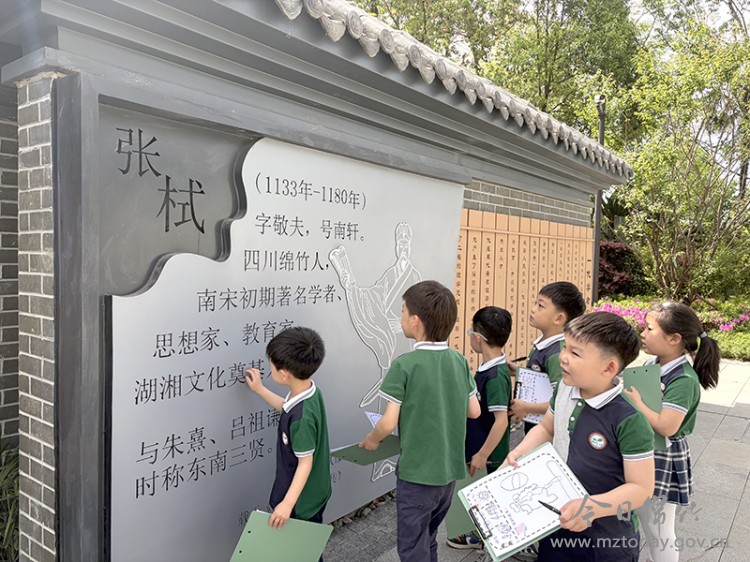 活动中,老师以绘本大书开启沉浸式共读,幼儿们围坐草坪,在生动的讲述中走进故事世界。随后,大家分组绘制“公园观察日记”,杜鹃花、柳芽、蚂蚁等自然景物在他们笔下化作鲜活的故事。在张栻雕像与文化景观墙前,幼儿们驻足聆听,初识先贤“知行合一”的治学精神,还化身“阅读小使者”,向过往市民分发自制的阅读倡议书,用稚嫩童声宣传世界读书日,邀请路人共沐书香。