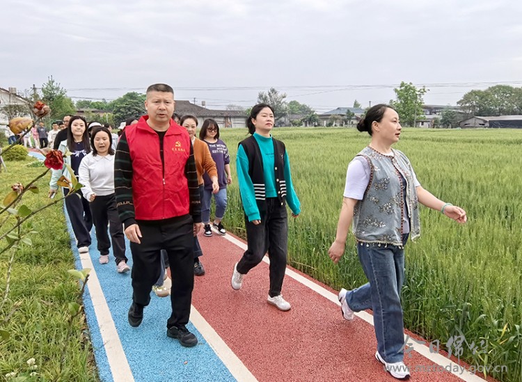 活动现场,参与者沿着景区指定路线结伴而行。为提升活动的参与性和教育意义,沿途还设置有3处健康打卡点,融合健康知识、党建知识和乡村风情。每处打卡点由志愿者负责引导、讲解和盖章服务。参与者完成打卡任务集齐3枚印章后,可在终点兑换健康奖品,而未参与打卡的人员走完全程也可获得健步走纪念奖牌一枚。这种集运动、学习、趣味于一体的形式,极大地激发了大家的积极性,现场欢声笑语不断。