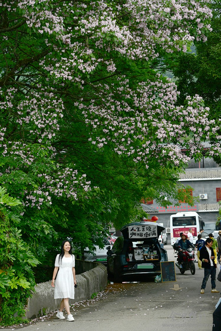 九龙镇棚花村:楸树繁花盛开成为网红打卡点