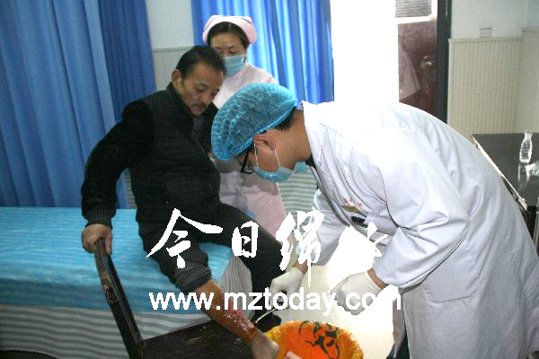 本刊消息 “杨大爷,你就安心住在这里治伤,不用担心费用的问题哈。”近日,我市中医医院骨伤科全体医护人员自愿发起捐款活动,为65岁孤寡老人杨加平进行了捐款,帮助其继续接受治疗。 春节前,家住我市金陵家园的杨加平在烤火取暖时不慎被烧伤。受伤后,老人没有及时到医院治疗,而是选择了一家私人诊所进行简单处理。几天后,老人发现右小腿的伤口不仅没有好转,甚至整个小腿都开始红肿,老人意识到问题的严重性,于2月2日来到市中医医院接受治疗。 “他刚来的时候,右小腿上的患处已经感染,而且有很严重的炎症。”老人的主治医生钟建军告诉记者,其右小腿上的烧伤达到了三度,十分严重,经过一段时间的治疗和手术后,创面恢复较好。 可就在杨加平老人腿伤日益好转,即将进行第二次手术的时候,老人有些坐立不安,甚至提出要出院,这让所有知道他病情的医护人员都有些惊诧。在与老人深入交流后,大家得知他并非不愿接受治疗,而是为医疗费用发愁。 “杨加平是我市一家破产企业的退休职工,也是一位孤寡老人,因为经济困难担心负担不起治疗费用才想到了出院。”主治医生钟建军表示,目前杨加平老人的腿伤恢复得很好,而且到了进行第二次手术的关键时间节点,如果错过了时机,患处可能丧失皮肤功能,甚至造成畸形。 弄清事情原委后,市中医医院骨伤科全体医护人员主动提出为老人捐款,帮助其继续接受治疗。 “太感谢医院的医生护士了,如果没有他们的帮助,我的伤口不晓得现在变成什么样子了。”老人难掩内心的感激。目前,老人正在市中医医院继续接受治疗,伤口恢复良好。