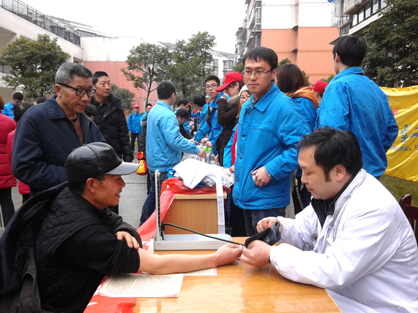 为认真贯彻落实服务百姓健康的工作理念,切实方便社区群众看病治病,3月1日上午,市中医医院血栓科和针康科四名医务人员来到东汽竹苑,配合东汽志愿者服务队,开展了义诊进社区活动。 上午9点,活动刚刚启动,义诊台前就聚集了数十名前来就诊的小区群众。义诊中,血栓科主任谢永福的“生意”特别好,面对众多老年患者,他一个个耐心询问,详细诊断。他说,虽然很忙,但能参加义诊活动,用自己的一技之长为群众解除病痛,感到很高兴。 现场,不仅医生看病忙,就连在一边为患者测量血压的护士们也忙得不亦乐乎。“从义诊活动一开始,来测量血压的老百姓就没有间断过,听诊器把耳朵都给我夹痛了。不过,能为乡亲们献点爱心,我觉得再累都愿意。”护士们面带微笑给前来测量血压的群众服务着。 在近三个小时的义诊活动中,医护人员忙着倾听患者介绍病情,为他们测量血压、开处方、讲解健康知识等。据悉,当天中医医院义诊服务点共接待前来咨询的群众100余人,为20余名患者开具了医药处方,发放健康宣传资料300余份,义诊活动受到了社区群众的好评。