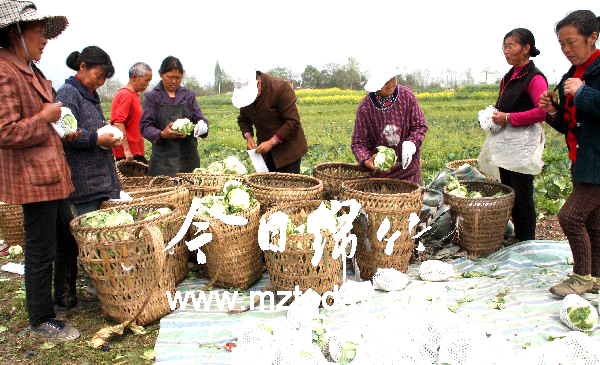4月2日,在该镇民乐村四组的菜地里,几十名妇女正一边说笑,一边忙着摘甘蓝。“我们这些五六十岁的妇女在家闲着没事的,都跑来摘甘蓝菜,一天能挣50元钱。”村民张世秀说。据介绍,去年该村四组将部分土地流转给了村里的鑫龙蔬菜合作社种植蔬菜,如今到了收获的季节,村里的剩余劳动力有了“用武之地”。 在民乐村一组的莲藕田里,又是另一番忙碌的景象。只见十几个壮男正在藕田里掏莲藕。伴随着“嘿哟,嘿哟!”的号子声,每一次弯腰转身,一根根胳膊粗壮的新鲜莲藕从泥田里拔起,在田埂上堆成了“小山”。“挖藕是个力气活,女人家根本吃不消,必须我们男人上阵了。”正在挖藕的李大哥对记者说。 在田边的一处空地上,鑫龙合作社负责人甘清建正和前来收藕的买家商讨着价钱。他告诉记者,合作社在民乐村流转了520亩土地,其中200亩种了莲藕,300多亩种了其他蔬菜,如今都到了收货的季节。“这段时间,合作社每天都有上百人务工,村民在家门口就挣到了钱。” 合作社搞种植赚了钱,得益的不只是合作社负责人,还有周边的村民。民乐村村支部书记王远会向记者介绍,民乐村因其地理位置属于典型的农业村,没有工业企业,没有旅游资源,必须做好“土地”文章,推动全村经济发展。为此,该村通过招商引资,成立了蔬菜合作社,许多村民都以土地入股的方式,种起了蔬菜。同时,该村还将200亩荒废多时的烂泥田种上了莲藕。如今,村民不仅能拿到土地租金,还可以在合作社里打工,真正实现了农业增效,农民增收。