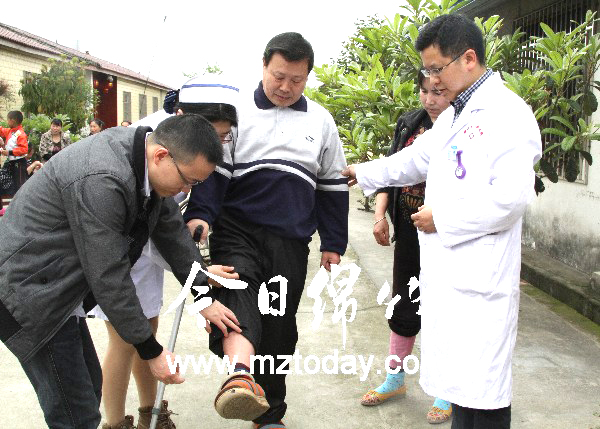 原来,尹华龙早在10年前就患上腰椎间盘突出症,做过大大小小的手术不下5次,但从来没有把病痛彻底解除,每晚都难以入睡。今年1月,尹华龙来到市人民医院骨科就诊,经诊治后做了经后路椎管减压、囊肿切除术,术后在全科室医护人员的精心治疗和护理下,不仅解除了他多年的腰痛,还可以下床走路,更重要的是他感觉到自己不再是家里的负担了。但出院后尹华龙还需要继续到市人民医院复诊,行动不太方便的他每次到医院都颇费周折。针对他的情况,市人民医院骨科医护人员决定上门为他服务。 为推进党的群众路线教育实践活动,市人民医院骨科专门开展了“送医上门,情系千家”活动,入户随访解决患者因行动不便导致的就医困难,便是活动内容之一。在此次活动中,该院骨科医护人员利用休息时间分别走访了家住玉泉镇、遵道镇、九龙镇的三位出院患者,针对他们术后情况,分别做了体格检查、功能评定和药物指导。同时,医护人员还对其家庭日常护理误区给予纠正,不厌其烦地解说直到患者及家属听懂为止。 市人民医院骨科有关负责人告诉记者,通过此次随访活动,既让医务人员深刻理解到行动不便患者的就医难处,同时让患者及家属深刻理解医务人员的真诚与真心,促进医患双方相互理解、包容与信任,真正实现和谐医患。