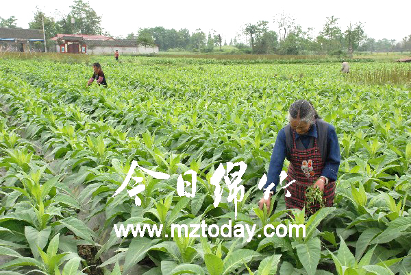 在天平村16组,王文会正在自己的叶烟田里忙着“打烟尖”,所谓“打烟尖”,就是把叶烟刚发起来的“芽尖”摘掉,为的是避免叶烟长得过高而不长叶子。王文会告诉记者,她家有3亩多地,今年种了2亩多的叶烟,再过1个多月,叶烟收割后刚好插秧种水稻,不耽误农时,每亩叶烟至少要卖3000多元,比种植小麦、油菜划算。 广济叶烟种植历史悠久,是广济农民一项增收致富的“门路”,该镇的种植规模逐年扩大,今年全镇种植面积达到1000余亩,主要以柳烟为主,天平村、祈祥村、中新村、石河村均有种植。在鼓励农民种植的同时,镇上还积极做好服务工作,联系烟草公司、安排镇农业中心人员对农户进行田间技术指导。由于广济叶烟非常有名,每到收获季节,收购商就会主动到农户家收购。 叶烟销售价格的高低,一是取决于市场,二是取决于“卖相”。市场自然无法控制,所以,叶烟的“卖相”很重要,必须打“技术牌”,今年镇上从叶烟栽种到叶烟管理,都安排了技术人员到田间指导,确保农民增收“实打实”。