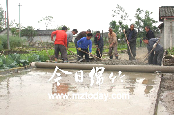 本刊消息 “每天早上六点过,他们就开始修路了,看这样子今年农忙时收割机就能开到我田里了。”4月23日上午9点,记者在土门镇石团村二组采访时看到,来自村里的十多名党员在村两委干部的带领下,有的忙着铺石子,有的忙着和砂石,有的挥起铲子忙着打路基,好一派热火朝天的景象。该村73岁的马婆婆看到眼前的景象非常高兴。她说,再过几天路就修好了,今年农忙再也不担心收割机开不到自家田埂边了。 原来,在灾后重建时该村大部分农户都把新房修到了集中规划区域,而少数农户因舍不得旧宅基地而选择了原址重建。房子虽修好了,但原来的乡村道路却随着时间的推移而变得坑坑洼洼。“晴天尘土飞扬,雨天一路泥泞,给我们出行带来了很大的困难。”村民刘玲告诉记者说,虽然只有几百米的烂路,但却严重影响了大家的生产生活,特别是农忙时节,因路烂而不好请收割机,非常不方便。住在老宅基地的几十户住户便三天两头找村两委,今年终于开始修路了,大伙儿心里有说不出的乐。 “践行群众路线,就是要帮助群众解决最想解决的困难。”修好这条烂路,是该村在开展党的群众路线教育实践活动中了解群众意愿后决定的。在镇党委政府的支持下,该条道路争取到了“一事一议”财政奖补政策,大家的修路热情更加高涨。孙天海、唐兵等党员表示,“要修路,党员要带头!”消息传开后,村里的党员便积极行动起来,自觉加入到修路的行列中。 每天早上六点就进场,抢工期,抓进度,分工协作,积极投入道路建设当中。“趁着农闲,天气又好,大家加把劲,搞快点。”村两委干部一边忙一边告诉记者,从毛路开挖到铺路基,从运砂浆再到现在的道路硬化,一条宽3.5米、长约500米的乡村道路已初具规模,预计“五·一”前便可实现通车。