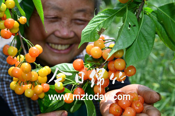 近年来,兴隆镇积极引导村民利用沟渠路边、房前屋后的空地种植樱桃、柚子等果树,不但美化了环境,而且增加了经济收入。图为4月25日,兴隆镇广灵村19组村民宋关琼采摘樱桃的情景。