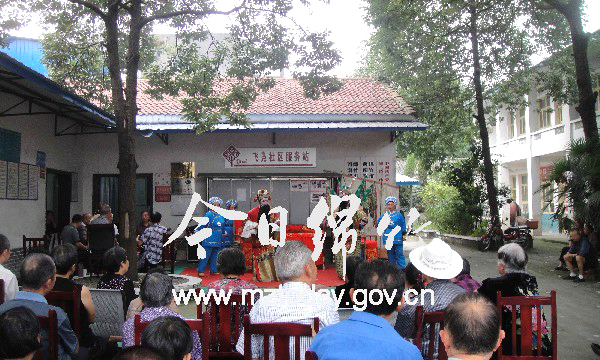 西南镇 本刊消息(记者 王勇 文/图) 10月2日是重阳节,西南镇通过文艺汇演、老少联谊、关爱慰问等方式,把关爱之情献给老年人。飞凫社区邀请绵竹川剧玩友协会演员进行川剧表演;安国社区将老人集中在村委会,给老人过集体生日,并为老人表演文艺节目;镇老龄委邀请退休老干部和老年协会成员对全镇80岁以上老人进行慰问。 家住建设村的杨荃老人今年已是104岁高龄。镇党委书记金春详细了解了老人的健康状况和生活情况,并送去了牛奶等慰问品。交谈中,精神矍铄的老人还即兴背诵起唐诗《长恨歌》。老人说,党和政府随时挂念着自己,生活上也很是关怀,日子过得很不错!