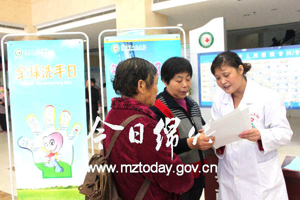 今年的10月15日是第七个世界洗手日,今年的主题是“选择洗手,选择健康”。为了提高广大市民对洗手防病知识的知晓率,特别是教育儿童从小养成良好的卫生习惯,10月15日,市人民医院在医院门诊大厅和紫岩小学,开展了洗手健康知识宣传系列活动。