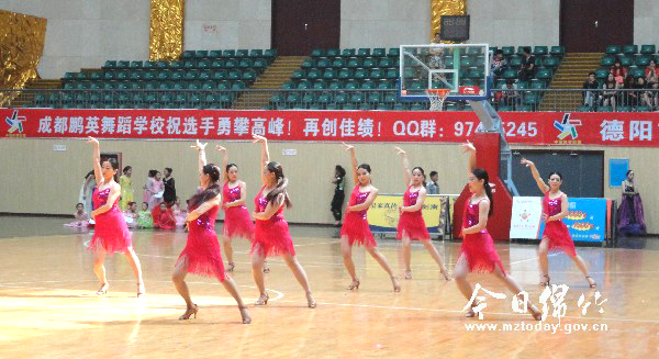 当天体育馆内音乐悠扬,来自各地的选手们身着炫丽的舞裙,随着音乐翩翩起舞,华尔兹、伦巴、恰恰、探戈……参赛者一个个激情飞扬,优美的舞姿让人感受到国标舞的无穷魅力,活力四射的表演吸引了数千名观众前往观看。 当天的比赛从上午一直持续到下午,成人精英组比赛最吸引眼球,一对对舞者在场上激情飞旋,精彩的表演让人目炫神迷。学生组的集体舞,少儿组的稚嫩表演,都各有特色。经过参赛者激烈的角逐和裁判员公平公正的评分,最后评出名次,颁发证书奖杯。 获得拉丁舞成人组第一名的陈佳非常激动,她十分感谢主承办方给予他们这次机会,让她与来自四川体育舞蹈学院的舞伴在赛场上赛出真我,赛出自己的水平。 来自成都的李想和黄适乔安迪获得了摩登舞成人组第一名。他们说,这次比赛云集了各地高水平的选手,对他们来说是一次很好的锻炼机会,通过和大家切磋舞技,学到不少东西。 德阳市老体协常务副主席、德阳国标舞协会理事长谢贤琴也参加了当天的表演。她说,本次比赛规模宏大,共1000多名高水平舞者参加了110多场比赛。通过比赛,将进一步推动绵竹乃至整个德阳的体育舞蹈的发展。