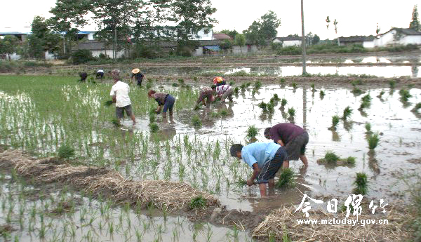 本刊消息 5月30日下午5点,富新镇九胜村终于接到了调水通知,村组干部难掩喜悦。 “老邓,你快点挨家挨户通知村民做好灌溉准备。”“老陈,凌晨四五点钟就来水了,你打起精神,7组放水全靠你了。”为了确保村民不错失灌溉机会,19名村组干部卯足了劲,沿着沟渠挨着敲响了1200余户村民的家门,一一叮嘱他们灌溉注意事项。空腹徒步走了近7个小时,通知完村民已是深夜12点过了,大家再一次确认14台机具、11台抽水泵和放水员全部到位待命后,便坐在沟渠边就着矿泉水啃着方便面吃起了“晚餐”。 凌晨1时许,张万贵和同事们不顾劳累又开始沿着沟渠守水、放水。看着村民的田里放进了白哗哗的水,村组干部疲惫的脸上露出了开心的笑容。 守水、调水、解决矛盾纠纷……从5月1日起,村主任张万贵就没吃过一顿饱饭,睡过一次安稳觉,在一个月时间里,他瘦了10多斤,额头上多了几道皱纹。因为持续高压、劳累过度,村里几位组长都累晕在岗位上。“只要能让村民尽快打田插秧,再苦再累都值得。”张万贵说。 据了解,九胜村今年计划栽种水稻2900亩,截至6月2日,已栽插2300余亩。