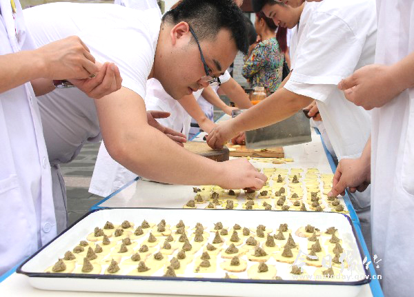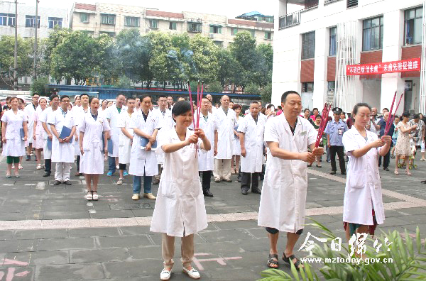 本刊消息 6月20日,市中医医院举行了2015年“祭拜医圣 传承中医”暨第六届大型艾灸义诊活动。 早上8点30分,活动正式开始,医院院长李锐等人净手后,陆续走到“神农大帝”神农氏、“医圣”张仲景和“药王”孙思邈的像前行礼、上香,并拜读祭文,以此表达对古代医学先贤的崇敬和缅怀之情。 祭拜仪式结束后,市中医医院基层指导科、治未病中心、名医堂和剑南社区卫生服务中心等科室的医务人员开始忙碌起来,他们用清晨准备好的蒜片、姜片、艾绒为现场群众进行免费艾灸服务。据了解,当天共有数百名市民在市中医医院享受到免费艾灸服务。