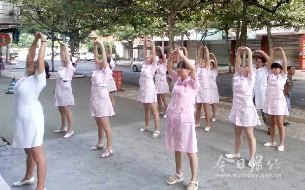 本刊消息 为引导医护人员以更加积极的心态和健康的体魄为广大患者服务,7月29日早晨,伴随着悠扬的古乐,市中医医院紫岩街分院的护理人员在门诊部门口认真地练习着八段锦。 八段锦是一套独立而完整的健身功法,可改善不良心理状态,疏通经络气血,具有保精、养气和存神的作用。练习八段锦要求静心、戒躁、专注、沉稳,若长期坚持,不仅能强身健体,还能修身养性。 据了解,市中医医院紫岩分院医护人员每周三早上7点半开展学习八段锦、展示特色保健操的活动,同时也希望过往市民和广大患者能积极参与其中。