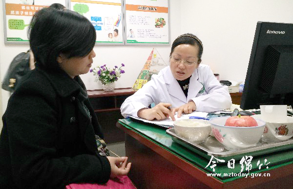 本刊消息 日前,孝德镇斗峰村的产妇陈英和家人将一面写着“工作负责、贴心呵护、服务热情、技高心细”的锦旗送到了市人民医院产科营养门诊副主任护师、营养师牟建容的手中,以表达对其的感激之情。 之前,怀孕31周的陈英因血糖较高找到牟建容寻求帮助。在为她量身制定了个性化营养食谱后,考虑到食谱当中涉及到粗粮饼干和低脂牛奶,为了方便孕妇,牟建容专程从成都为陈英带回精心挑选的粗粮饼干和低脂牛奶送给她。经过孕后期的精心调理,陈英的宝宝健康出生,后来,牟建容还经常看望陈英和孩子,指导陈英的饮食,鼓励她进行母乳喂养。为了表达对牟建容的感谢,便有了文章开头的一幕。 11月25日下午,记者走进市人民医院产科营养门诊,牟建容正在接诊前来的孕产妇。一旁的桌子上,放着一个金字塔造型的玻璃罩,里面放置了不同种类的食物。牟建容指着“金字塔”告诉孕产妇:“这是营养食谱金字塔,最下层的食物需要量最多,越往上需要摄入的量就越少。”牟建容随后又根据孕产妇的个人情况,详细地为她们讲解每天的营养搭配及注意事项。 “耐心、细心、热情、周到。”这是众多孕产妇对牟建容的评价。自9月8日产科营养门诊开诊以来,她已为不少孕产妇进行了专业的营养评估、营养咨询,制订营养处方,提供膳食和运动指导,受到了广大孕产妇的好评。这一切,和牟建容的辛勤付出是分不开的。平日里,除了热情耐心地接诊前来的每一位孕产妇外,在牟建容的心里,还有一个时间表,每当哪位孕产妇应该前来就诊而没有定期来时,她都会通过电话、短信一对一告诉孕妇如何合理饮食,尤其是对妊娠合并糖尿病的孕妇,牟建容会反复叮咛她们要注意监测血糖、控制体重的增长速度,如果她们遇到什么困难,都会尽力去帮助。之前,一位周姓孕妇,既患有妊娠糖尿病,脐带生长位置又影响了胎儿的血液供应,导致胎儿比较小,又因为先兆早产住院了,情绪很是低落,对妊娠没有信心。牟建容便每天到病房去看她,开导她,为她量身制定个性化饮食方案。经过这些措施,后来她的血糖控制较好,11月5日,顺利地产下了一名6斤4两的宝宝。 面对众多孕产妇的称赞,牟建容表示这是自己应该做的。她告诉记者,生一个体重合适、健康聪明的宝宝,既是她们产科人的共同心愿,也将是自己一直努力的方向。