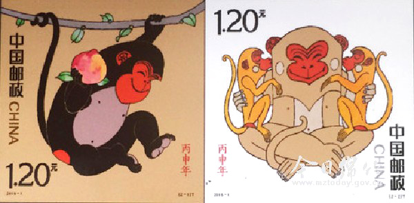 “丙申猴”生肖邮票明年1月5日发行 线上线下均可预订
