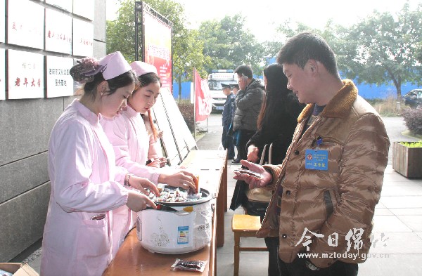 本刊消息 12月22日,在市政协委员报到期间,市中医医院派出医护人员来到现场,为委员们和现场工作人员送去了预防冬季流感的中药汤剂,发放了健康知识宣传单。 据悉,市中医医院将在“两会”期间为各位委员、代表提供热情周到的服务。
