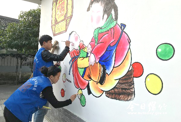 本刊消息 “两个可爱的大头娃娃,姐姐坐在凳子上抱着弟弟玩着小游戏,两人一脸笑容,格外开心……”3月1日上午,记者在金花镇玄郎村看到,几名年画师傅正拿着画笔,将这幅年画画在一户民居的墙上,并在旁边工整地写上“爱家”二字。“这是反映社会主义核心价值观的一幅年画,把它画在村民房屋的墙上,不仅美化环境,还能让村民时时感受到社会主义核心价值观就在身边。”一名年画师傅介绍说。 “这些年画不仅好看,还能随时提醒我们和邻里发生矛盾时要讲文明,和睦相处最重要。”在玄郎村村民集中点,78岁的刘生福大爷正驻足在一面墙前欣赏观看。他告诉记者,刚开始只知道是年画上墙,觉得好看有特色,后来经村党支部书记宣传才知道年画上墙不仅仅是在墙上画画这么简单,年画上都是社会主义核心价值观的内容。 记者看到,以“三讲三爱两进步”为主要内容的公益广告在玄郎村随处可见,而以社会主义核心价值观为主题的绵竹年画也画在了家家户户的墙上,潜移默化地影响和提醒着当地的老百姓,要爱国、爱家,为人要友善,做一个文明人。 据金花镇党委书记任刚介绍,为进一步掀起践行社会主义核心价值观的宣传热潮,在市委宣传部的组织下,金花镇对玄郎村农居的墙体进行改造,同时修建20余个小型年画景观墙,着力打造“社会主义核心价值观践行示范点”、“三讲三爱两进步示范点”、“绵竹年画产品创新载体展示点”三个示范点。据了解,从2月26日开始,近20名年画师傅参与到了该村年画上墙工作中,目前还在进一步规划打造景观墙,所有工作将于本月中旬完工。