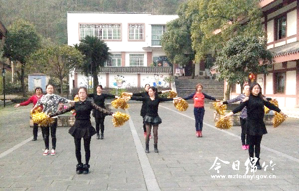 为了在全市三八节庆祝活动上展示遵道妇女干部的良好风采,近段时间,遵道镇妇联正积极组织全镇10个村的妇女主任排练健身操《自由自在》。图为妇女干部们在镇文化站排练的场景。
