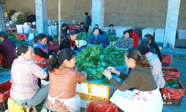 4月14日,记者在凯达种植专业合作社经营场地内看到,运来的山葵叶子先在水里进行清洗,然后由工人对叶子进行整理,一片一片地码好,最后经过处理便进入冻库。“这些叶子先经过初加工,然后运往上海进行精加工,再发往日本、韩国等国际市场。”现场负责人告诉记者,在这里做工的村民每天能挣60元。 山葵又名山萮菜,是一种绿色的高山植物,具有特殊香辛味的药食同源作物,被誉为“绿色黄金”的稀有珍品,山葵成长期一年半,叶子、叶柄和根茎均可食用。据了解,腾源农业科技有限公司采用“公司+基地+合作社+农户”的模式租用空地种植近5000亩山葵,每亩销售收入达2万元。