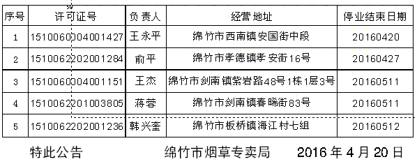 绵竹市烟草专卖局公告