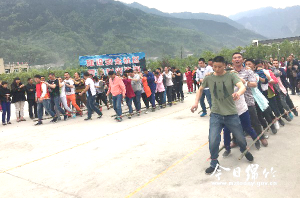 4月29日上午,清平镇庆“五一”农民趣味运动会在场镇停机坪举行。搭桥过河、滚铁环接力、6人跳长绳、袋鼠跳接力、走杆、拔河……由各村(社区)、驻镇单位组成的八支参赛队伍激烈比拼,虽然大家的动作不是很规范,但比赛激发出的团结协作精神却让大家感动,拉拉队也一个劲的为队员呐喊助威,整个比赛现场激烈又热闹,让大家充分感受到运动的快乐和节日的喜庆。