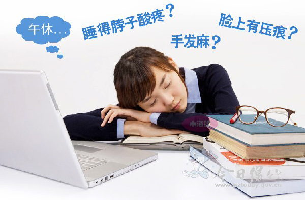 23岁的李萍在市区一家广告公司工作,因离家较远,中午她一般都不回家。午饭过后,她和办公室其他同事都会以手代枕,趴在办公桌上眯一会儿。每次午睡醒来,李萍都会感到手脚酸麻、视线模糊。最近,她手臂酸麻感加重,甚至影响到日常活动,不得已到医院就诊。 其实,不少上班族都同李萍一样,为了节省来回奔波的时间,中午基本上都选择趴在办公桌上午休,每次睡醒后,就会感觉四肢发麻,颈椎难受,脖子酸痛,甚至有一小段时间的视力模糊。市人民医院康复科主任赵正恩表示,用手臂当枕头,会影响手臂血液循环,容易导致手臂发麻、酸痛。头部经常侧向一边会使脑供血不足,严重者会出现头晕、乏力等现象。 适当的午睡,不仅可以消除困乏,还有助于调节心情,预防疾病。赵正恩主任建议,有条件的上班族,最好躺在床上或沙发上睡,最好采用仰卧或侧卧的姿势。午饭后不要马上就睡,否则大量血液流向消化系统,会造成脑供氧不足。没有条件躺着午睡的市民,可准备U型枕和靠垫,将U形枕垫在脖子上,靠枕靠在背上午睡,这样可以让眼睛、颈椎放松。