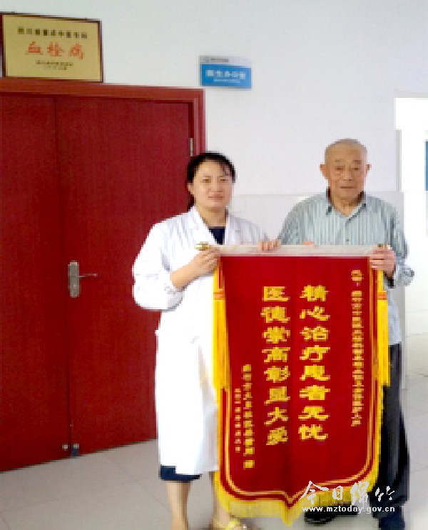 本刊消息 近日,市民林大爷和儿子一起来到市中医医院,将一幅写着“精心治疗患者无忧 医德崇高彰显大爱”的鲜红锦旗送到血栓病科医护人员手中,以表达对医护人员的由衷赞美和感激之情。 前段时间,林大爷因慢性病在市中医医院血栓病科进行住院治疗,住院期间得到了医护人员无私的关爱和精心照顾。端午佳节当天,科主任谢永福和护士长陈绍英还带领全科医护人员,为科室的住院患者送去了皮蛋、咸蛋和节日问候,让这些不能回家团聚的患者及其家属深受感动。 因为有医务人员的精心医护,林大爷住院期间心情愉悦,身体很快得到康复。怀揣着感激之情,他决定为血栓病科医护人员赠送一幅锦旗。 |