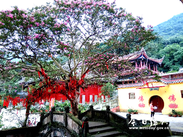 三溪寺里的连体紫薇树繁花似锦