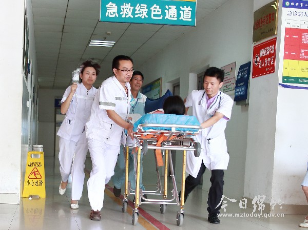今年7月的一天上午,时钟指向9点10分,刚刚交完班的外三科医生们正准备查房。此时,急促的电话铃声响起——“右锁骨上窝异物刺入,失血量大,请速来会诊!”接到急诊科打来的电话后,周义建、王维等医师立即赶往急诊科。此时,医务人员正在对一名满身鲜血、脸色苍白、神志不清、没有任何反应的患者进行抢救。经询问患者工友得知,早上8点40,患者正在工厂上班,运行中的砂轮片突然爆裂,直接射入患者右锁骨上窝,情况危急,被120送往医院抢救。 周义建、王维两位医师迅速了解患者病情,一边在急诊科行胸腔闭式引流、气管插管及建立静脉通道补液,一边将患者的具体情况上报外三科主任何启明。经验丰富的何启明主任临危不乱,立即邀请各相关科室医护人员组建抢救小组,建立急诊抢救绿色通道。在外三科、骨一科、麻醉科、输血科、重症监护室等数位医务人员的协作下,患者被紧急送入手术室。 9点40分,紧张的手术正式开始。手术中,患者右上肢冰冷,血管不能扪及搏动,创口内见活动性出血并镶嵌有直径约15cm断裂的不规则砂轮及撕裂的衣物,右锁骨粉碎性断裂。手术紧张而有序地进行,医生在为患者取出了镶嵌在创口内的砂轮及撕裂的衣物后发现,虽然患者血管断段没有看见明显的出血,可胸腔内有很多积血伴血凝块,右肺上叶多处撕裂伤,裂口深达15cm,裂口内有活动出血及漏气,而且患者在手术中出血量非常大,尽管术前已经做了充分的抢救准备,但抢救过程依然险象环生。医护人员沉着应对,运用过硬的医疗技术使患者在经过几个小时抢救后,成功脱离生命危险。 生命是脆弱的,它有时是那么不堪一击;生命又是坚强的,它从不轻言放弃。作为市人民医院的医务工作者,他们用自己的行动与死神抗争,与时间赛跑,守护着每一个脆弱的生命。