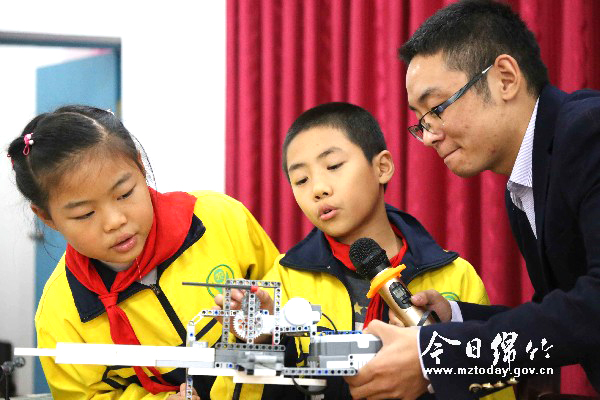 本刊消息 日前,由德阳团市委主办的德阳市“移动少年宫”走进汉旺学校开展了机器人展示活动。该活动也是学校2016年“走进创客体验创新”科技月系列活动之一。 当天,“移动少年宫”为学生们带来了智能机器大象、智能小车、魔方机器人以及智能“机关枪”等丰富多彩的机器人展示项目,让学生们在参观互动中充分感受到机器人的魅力。特别是智能“机关枪”体验吸引了众多男孩子的兴趣,而在玩魔方人机比赛体验时,很多女孩子也积极参与,毫不示弱,智能机器大象惟妙惟肖,走起路来还发出大象的叫声,赢得孩子们阵阵欢呼。 通过此次体验活动,既向学生们普及了智能机器人基础知识,也进一步激发了孩子们对机器人的浓厚兴趣。