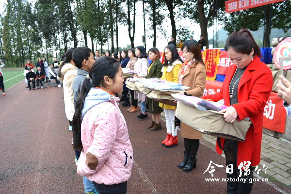 本刊消息 11月8日下午,寒风瑟瑟,但遵道学校操场上却阵阵暖意。由社会爱心企业及成都慈善总会开展的“关爱贫困、留守儿童”爱心捐赠活动正在这里举行。12家爱心企业为遵道学校学子送来了御寒和学习用品。 活动现场,遵道学校101名学生接受了爱心捐赠。参加捐赠活动的爱心人士殷殷祝福,鼓励孩子们努力学习立志成才。受助学生纷纷表示,滴水之恩当涌泉相报,他们一定不负众望,遵道而行拼搏进取,博学万科成就梦想! 遵道学校为爱心企业分别送上了锦旗,对关心帮助遵道学子的各位爱心人士表达了诚挚的谢意,并表示学校会鼓励孩子们努力学习,报答爱心人士的善举,回报社会,报效祖国。