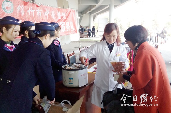 11月30日,在市政协委员报到期间,市中医医院派出医护人员来到现场开展义诊,同时还为委员们和现场工作人员免费送去了预防冬季流感的中药汤剂,发放了健康知识宣传单。