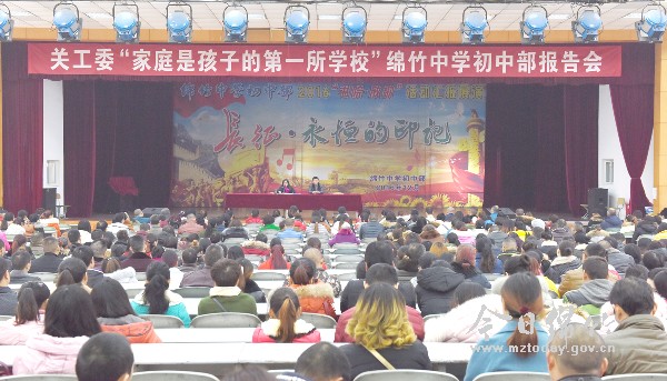 12月2日下午,中国关心下一代工作委员会家庭教育研究中心开展的“英才教育”全国巡回报告公益活动走进绵竹中学初中部。当天的报告主题为“家长是孩子的第一所学校”,该校初中二年级的600多名家长到场聆听报告。主讲人为全国著名的青少年心理教育专家余永红教授。