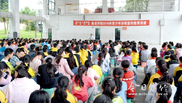 法治之风满校园 关爱帮教润心灵 走进遵道学校,郁郁葱葱的校园中,法治文化长廊赫然映入眼帘。徜徉在展示栏下,浏览着法治名言和法治宣传活动剪影,一阵阵法治清风拂面而过。 据了解,学校在各阵地的建设中,专门为法治教育留下空间,尝试将多种元素融合,给学生们带来了更多的法治教育机会。在小抄报宣传栏、普法宣传栏等校园景观内,提供学生法治格言、法治小报、书法作品展览的阵地,在黑板报、校园广播上为学生们搭建法治知识展示平台,进一步加深法治知识在学生脑海中的印象。记者注意到,学校橱窗、走廊的显要位置、各班黑板报均开辟了法治教育专栏,校园内处处可见法制教育宣传标语。 阵地已搭建,人员也得配备。为此,学校多次邀请民警、市人民法院剑南法庭工作人员为学生作法律知识讲座;定期召开的教师会上开展法律知识普及,团队活动、班会活动以法律知识为题,让学生们以法治书画作品、法治文艺表演的形式来体现法治教育。并时常邀请学生家长参加学校开展的各种法治主题教育活动,通过“大手牵小手”的形式让学生家长也受到法治教育,提高家长的法治意识,将家庭教育、学校教育和社会教育有机结合起来,形成了一个覆盖学生全面成长的法治教育网络。