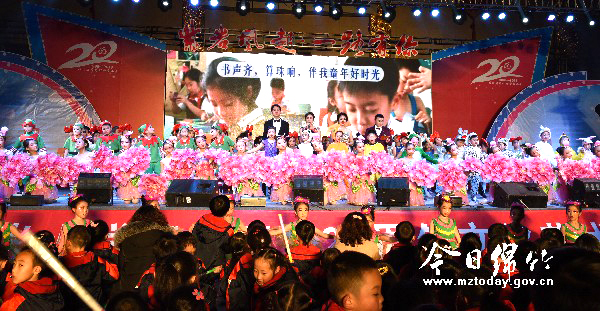 市教育局局长甘德福到场致辞。紫岩小学被全国预防灾害管理联盟授予国家预防灾害文化公益活动项目培训教育基地,全国预防灾害行业管理联盟副理事长、北京市老龄产业协会副会长韩陆为其授牌。 当晚的活动共分为《紫岩师者》、《紫岩印象》、《魅力紫岩》、《美好紫岩》等4个章节。紫岩雏风清音诵读班的孩子们身着古典服饰,在轻扬婉约的曲调中浅吟低唱《诗韵紫岩学子》,他们的朗诵点燃了市特殊教育学校“星星”诵读班孩子们的热情。当晚,紫岩小学还将本校孩子们的一万元现金捐款赠给市特殊教育学校。 师生大联唱将紫岩小学建校20周年纪念活动的气氛推向了高潮。灿烂的笑脸,欢快的旋律回荡在场馆的每一个角落,菁菁校园的琅琅读书声,特色班的每一幅年画,每一曲优雅的琴声,都是紫岩小学最美的篇章。每一方讲台、每一座花园、每一条艺术长廊都是紫岩最靓丽的风景线。 当晚的活动还揭晓了影响紫岩发展的10位人物、影响紫岩发展的10大举措、印证紫岩发展的10项荣誉。
