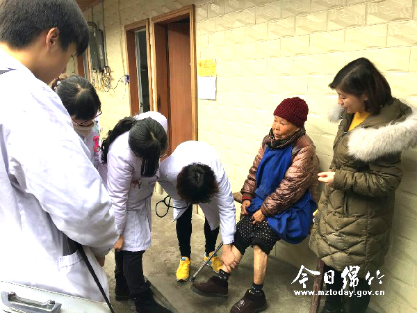 本刊消息 近日,市卫计局、市人民医院等部门、单位的干部职工和医务人员来到玉泉镇圣母泉村开展了春节前慰问活动,为贫困家庭送去了关心和祝福。 当天,慰问人员一行冒着严寒,走乡入户,同他们拉家常、问冷暖,详细询问他们的健康和生活状况,鼓励他们勇于面对眼前的困难,树立生活的信心。同时,还将米、面、油、肉、棉被、冬衣等生活必需品一一送到贫困户手中。对部分因病致贫的家庭,医务人员上门免费为他们检查身体,发放常用药品,详细讲解医疗精准扶贫的优惠政策,鼓励他们积极配合治疗,安心养病,争取早日康复。 据悉,此次慰问义诊活动共走访慰问了12户精准扶贫户。