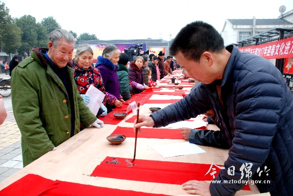 1月18日上午,齐天镇在文化广场开展了迎春系列文化活动。书法爱好者们现场为村民书写春联,镇妇联、团委等部门为村民发放宣传资料,向村民讲解相关政策。 |