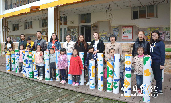本刊消息 4月6日下午,市第二示范幼儿园的《独具匠心的创意时光》美术活动拉开帷幕。 PVC大型水管、即时贴、纽扣、夹子、瓶盖……这些都成了孩子们的创作材料和工具。活动中,小宝贝们大胆想象创作,爸爸妈妈也积极参与其中,在趣味十足的亲子互动中,体验学习的乐趣。 据了解,从本学期起,市第二示范幼儿园正式启动“亲子时光 乐享DIY”主题活动。该活动鼓励孩子和家长收集生活中的环保废旧材料,通过全园参与、家园互动,让孩子们在游戏中学习艺术,爱上艺术。