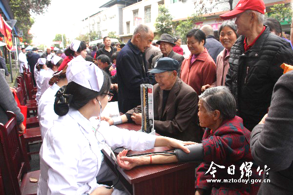 本刊消息 为了给贫困群众送去党和政府的温暖,4月8日,由兴隆镇主办、仁爱医院协办的“党员在行动——大型义诊活动”在兴隆场镇开展。 12名医务人员到达现场后忙着取仪器、搬桌凳、搭建义诊服务台。一切准备就绪后,他们忙着为贫困群众进行了血压、血糖等常规检查、发放了感冒药等常见药品,还给贫困群众讲解了合理饮食、适当参加体育锻炼等方面的健康知识,指导贫困群众养成良好的生活习惯,提醒他们要在身体健康方面做到早预防、早诊断、早治疗。