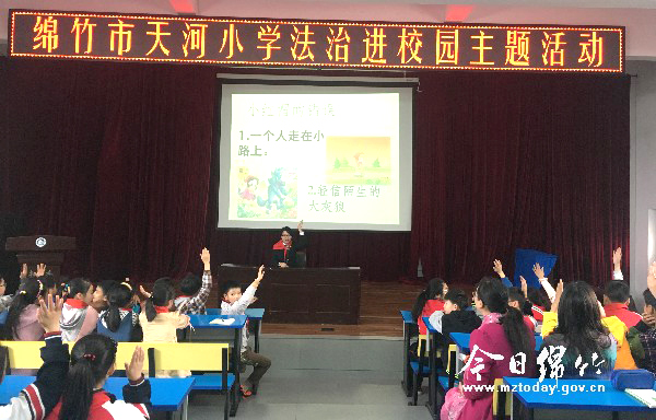 本刊消息 “小朋友们,这个故事告诉我们不要随便和陌生人搭话,要保护好自己的人身安全哦。”4月12日下午,天河小学邀请了市人民检察院检察官“小双姐姐”走进校园,为学生们开展“呵护成长、远离伤害”法治宣讲活动。 当天宣讲活动中,“小双姐姐”以小朋友熟知的童话故事,以及发生在小朋友身边的典型案例,用朗朗上口的歌谣形式传授孩子们防范伤害的简单技能,受到了孩子们的喜爱和学校老师的高度肯定,纷纷为检察官们点赞。