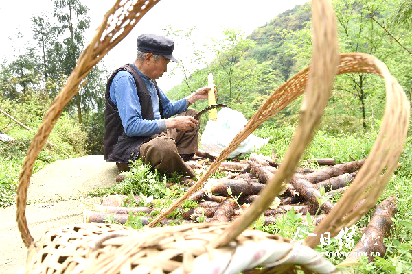 金花镇吉祥村、凤凰村等地的集体林地和村民承包林地的楠竹笋到了采挖的季节,挖春笋成为当地村民的收入之一。图为当地村民在剥笋壳。