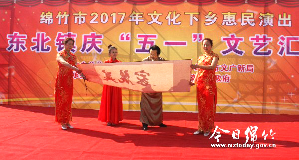 本刊消息 悦耳的歌声、优美的舞蹈、动人的器乐演奏……4月28日,由市委宣传部、市文体广局主办的“2017文化下乡惠民演出暨东北镇‘五一’文艺汇演”在东北镇联合村文化广场举行,为当地村民送来一场丰盛的文化盛宴,送上一份节日的祝福。 一曲激情奔放的舞蹈《走进春天》拉开了此次文艺演出的序幕。台上演员们不时旋转、跳跃,曼妙舞姿搭配上优美旋律,让台下观众看得目不转睛;小品《管家》、男生独唱《步步高》、二胡独奏《金珠玛米赞》、脱口秀《家》等一连串的精彩节目轮番上演,掌声、欢呼声一浪高过一浪,尤其是音乐快板《美丽家园新绵竹》,更是唱出了全市人民建设美丽家园的决心,将现场气氛瞬间推向高潮。