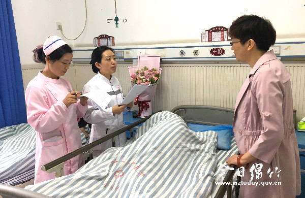 本刊消息 “你刚来我们医院的时候,护士接待你,觉得满不满意。”“满意!”近日,在市中医医院骨伤科的一间病房内,两名医务人员正在对患者家属进行满意度调查,从医务人员服务态度到住院医疗环境,调查的问题十分详尽。 为进一步提升医院服务质量,让患者享受到优质的服务,市中医医院从2014年开始,通过对患者及家属开展满意度调查,不断完善医院服务体系,优质的服务受到了患者和家属的一致好评。 通过长期调查,医务人员发现,一些患者在住院期间没有家属照顾,检查很不方便。为此,医院专门抽调人员成立了杏林志愿服务队,为老弱病残孕以及没有家属陪伴的患者提供导医、排队、陪同检查和取送检验报告单等服务。 “照片时,他们就用车子把我推着去又推回来,服务很周到。”今年74岁的张立光大爷半个多月前因腰部压缩性骨折住院治疗,由于子女都在上班,张大爷长期一人呆在病房。得知情况后,医院杏林服务队的队员廖婷便承担起了照顾张大爷的义务。除了陪他检查、取药,一有空廖婷还会来病房陪张大爷聊天,贴心的服务让张大爷十分感动。廖婷告诉记者,作为服务队的一员,她每天的工作就是在老年人、残疾人就医不方便时,帮助其挂号、取药,接送他们,住院病人就要陪着他们送检,希望通过此类服务减轻家属的后顾之忧,让病人能安心治病。
