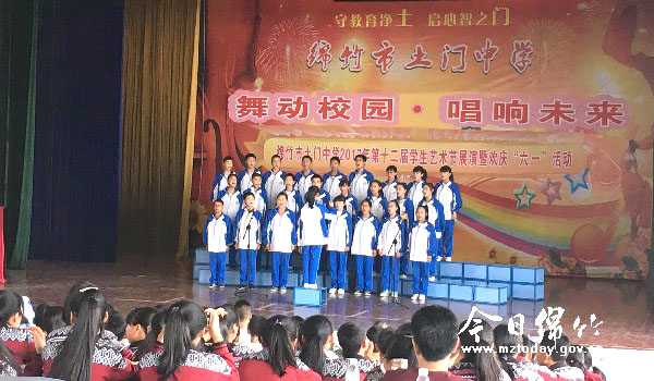 土门中学:本刊消息 为深入推进素质教育,努力营造和谐向上、健康文明的校园文化氛围,5月27日下午,以“舞动校园·唱响未来”为主题的土门中学第十二届学生艺术节展演暨庆“六一”活动火热上演。 当天的文艺展演分为合唱比赛和舞蹈比赛两个环节。比赛中,学生们时而深情舒缓的演唱,时而动感激情的舞蹈,极富个性的精彩表演令现场师生和家长代表欢呼如潮,掌声不断,将艺术节推向一个又一个的高潮。 活动中,新团员还进行了入团宣誓仪式。