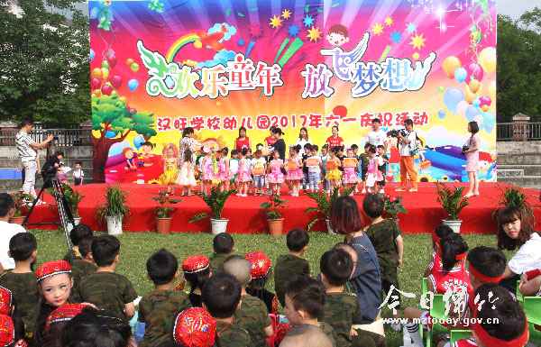汉旺学校幼儿园:为了让孩子们过一个快乐的儿童节,汉旺学校幼儿园精心准备,在5月25日至27日期间,分大班、中班、小班举行了“欢乐童年 放飞梦想”六一庆祝活动。孩子们在家长的陪同下身着节日服装,唱歌、跳舞、做亲子游戏,同时,该校还表彰了一批优秀幼儿和优秀家长。 本刊记者 张红/摄