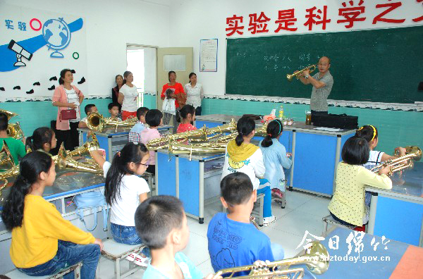 本刊消息 “吹奏小号时,双唇紧贴于号嘴,气流冲击双唇使之振动发音,我们称此时状态下的双唇及周围肌肉形态为口型。演奏时,口型的作用极为重要……”7月6日上午,齐天学校多功能教室里,一堂生动的鼓号训练课正在这里举行。当天的鼓号训练课拉开了由齐天镇团委、齐天学校共同举办的“绿色发展,健康成长”2017夏令营开营帷幕。 为了让留守学生度过一个有意义的暑假,感受到社会各界的关爱,齐天镇团委、齐天学校举办了2017夏令营活动。活动内容包括安全、法制、劳动教育;心理辅导、亲情陪伴;课业辅导、铜管乐演奏培训;集体生日、书信寄亲情;手工制作、体育活动;外出集体生活体验、家长(监护人)培训等。 参加活动的刘祥小朋友告诉记者,今年的夏令营活动内容很丰富,能让自己学到很多知识,注定是一个特别有意义的假期。